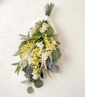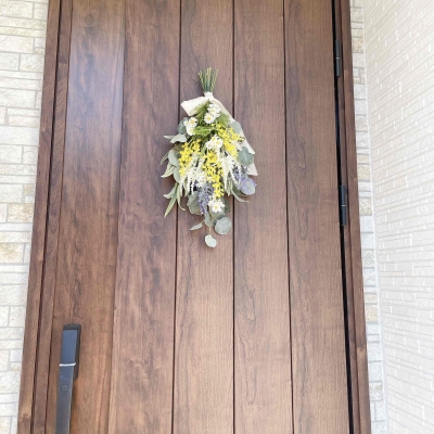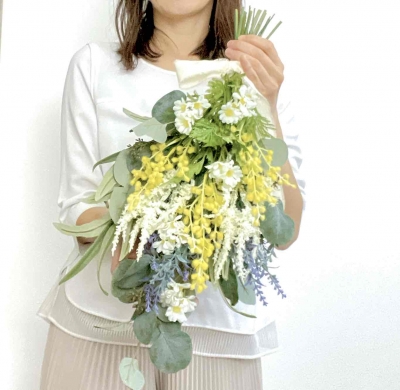 2月は、3月8日の"ミモザの日"にちなみ、ミモザをたっぷり使った春らしいナチュラルなスワッグを作ります。