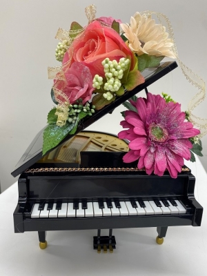 ピアノ型のかわいいオルゴールに、デコラフラワー(造花)を使って華やかにデコレーションしていきます。