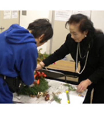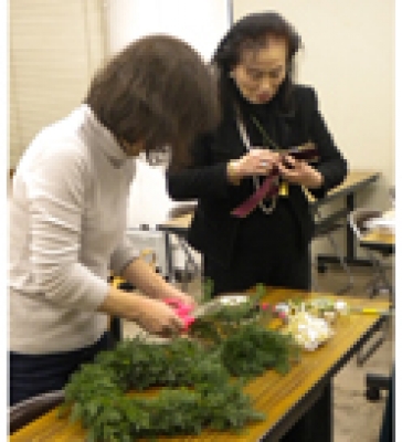 季節の花でテーブルに飾る花は勿論、コサージ、花束等を祭事や母の日、クリスマス、お正月等折々に学びます。