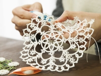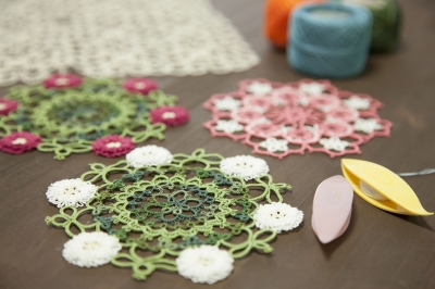 ”シャトル”と呼ばれる船形の道具で一目一目結び目を繋いでいくタティングレース。道具の使い方や糸のかけ方から始めますので、初心者の方でもご安心ください。小さなモチーフを使ったアクセサリーや、編み繋げばドイリーやショールなど大物作品を作ることができます。ちょっとした空き時間や電車での移動中、旅先のお供にと、いつでもどこでも気軽に編めるところが魅力です。中世ヨーロッパで流行し、今では世界各地で愛好されているこのレース。一緒に楽しく編んでいきましょう。