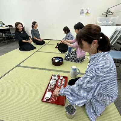 ①・自己紹介・おじぎの仕方(立礼、坐礼、かけ礼)・立ち方、坐り方、歩き方・席入り、扇子の扱い
