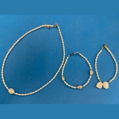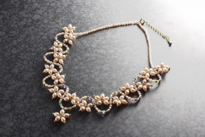 様々なパールや天然石の中から好みのものを選んでアクセサリーを製作。シンプルにも流行のデザインにも仕上げられます。また、手持ちのネックレスの糸替え、古いネックレスや念珠のリフォームの仕方なども学べます。各々のペース、好みに合わせて進められるのも魅力。真珠会館の案内人でもある講師が、真珠の知識も詳しく伝授。体験講座では、上品なパールを使ったネックレスまたはブレスレットを制作します。お好みに合わせてお好きなアイテムをお選びいただけます。初めての方でも取り組みやすい内容で、日常にも取り入れやすいアクセサリーに仕上げていきます。