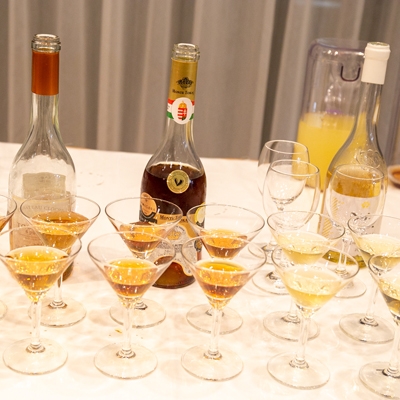 まずはウェルカムドリンクとして、微発泡の白ワインをお楽しみいただきながらハンガリーワインの背景や、「トカイワインとは何か」をテーマに、歴史や特徴をわかりやすくご紹介します。