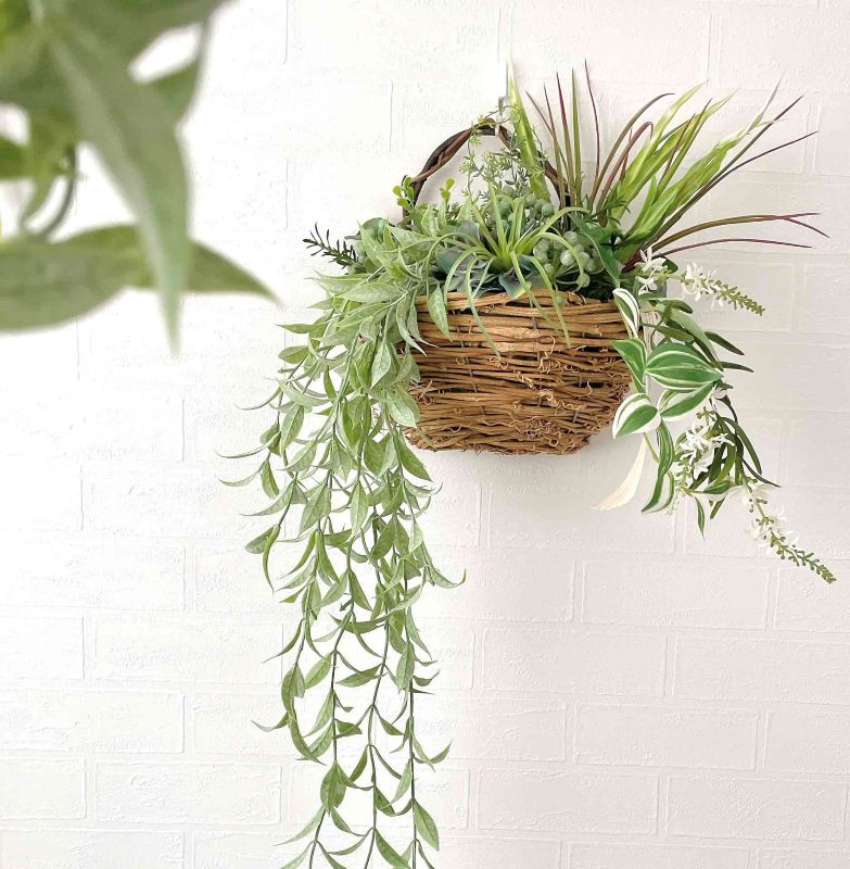 お手入れ不要で、癒し効果のあるグリーンアレンジをお部屋の壁に飾っていただけます。