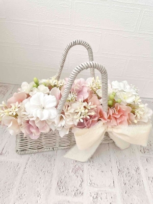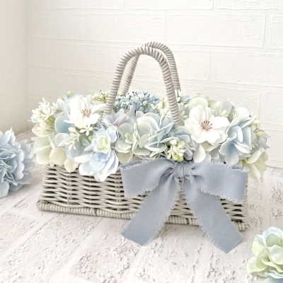 【6月】梅雨の時期に美しく咲く色とりどりのあじさいを、ふんわり集めたような花カゴを制作します。