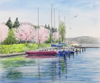 スケッチ淡彩とは、鉛筆、ペン、鉛筆型クレヨンなどで対象物を描写し、透明水彩絵具で彩色する「絵画入門」のようなものです。春や秋のさわやかな日には野外に出て風景を、雨の日や暑い時期、寒い時期には室内で人物や静物を描きます。風景制作では、木々の緑や影の深さ、紅葉の美しさなどに新たな発見をすることでしょう。人物では、裸婦の量感や衣装のヒダの表現に「楽しい苦労」を実感するでしょう。静物では、その立体感や構図の考え方を学ぶ事が出来ます。