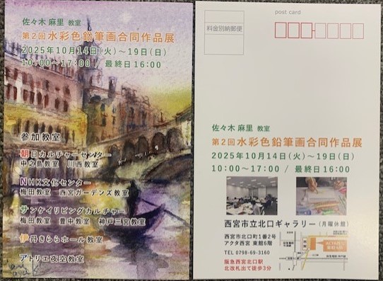 佐々木麻里先生の生徒さんたちによる「第2回水彩色鉛筆画合同作品展」が、10/14(火)~19(日)、西宮市立北口ギャラリーで開催されます。